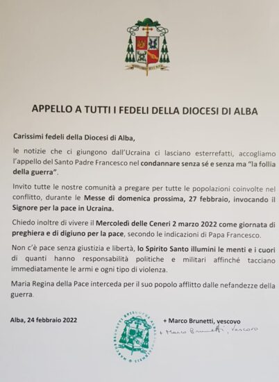 Veglia di Fraternità presso il Duomo di Alba, Sabato 5 Marzo 2022 – Ore 21.00. Presiede il Vescovo mons. Brunetti.PER SAPERNE DI PIU' →