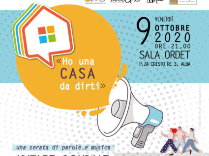 Venerdì 9 Ottobre alle ore 21 in sala Ordet una serata-evento di parole e musica promossa dai giovani under 35 impegnati in esperienze di “abitare solidale” sul territorio di Alba, tra gli organizzatori anche i volontari residenti della Casa di Accoglienza di via Santa Barbara. Racconti e riflessioni si alterneranno alla “musica dal mondo” dell’orchestra giovanile Babayetu. Sarà un’opportunità per ascoltare la voce di chi vive “da dentro” l’accoglienza diPER SAPERNE DI PIU' →