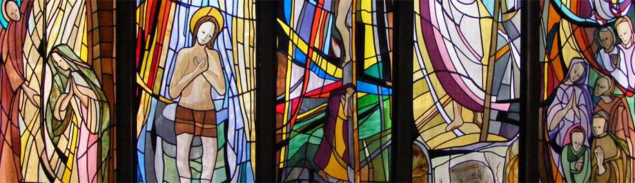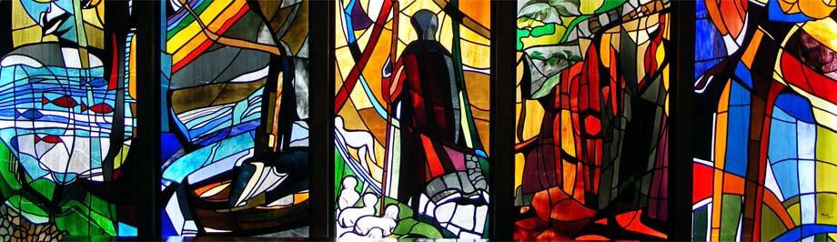 Egli desiderava narrare con elementi figurativi e simbolici, grazie alla sinfonia di colori offerta dai giochi di luce, la storia della salvezza che si snoda nei dieci riquadri che illuminano la chiesa.