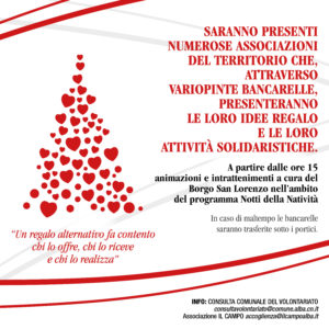 Domenica 9 dicembre torna la tradizionale Piazzetta della Solidarietà in piazza Duomo. occasione promossa dalla Consulta per condividere con la cittadinanza il lavoro delle molte associazioni di volontariato sul territorio e dar loro la possibilità di raccogliere fondi per alcuni progetti